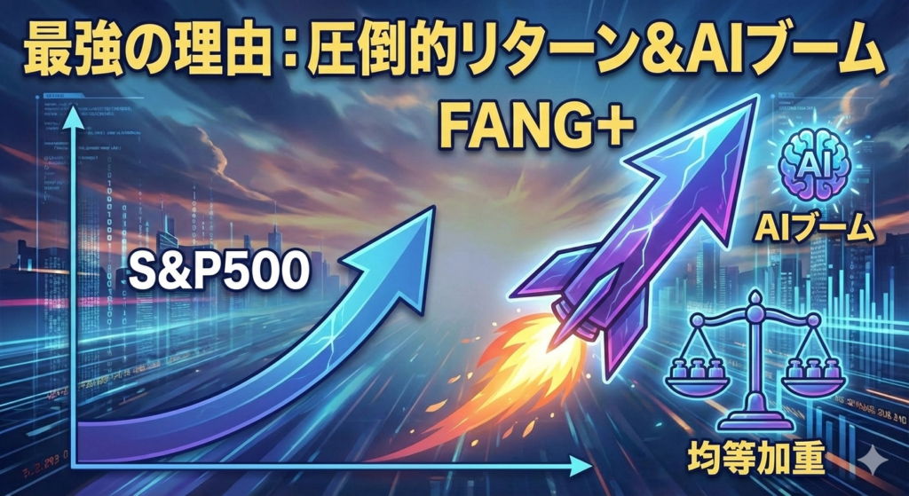 - FANG+は、米国最強の**「神10企業」**への集中投資。