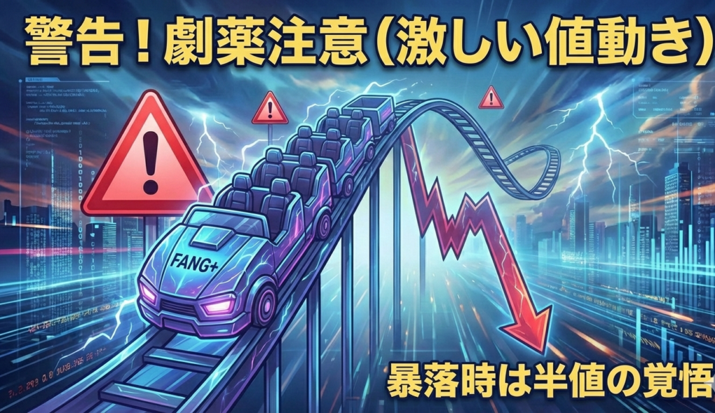- 暴落時は半値になる覚悟が必要2022年のようなハイテク株不況が来ると、S&P500が20%下落している横で、FANG+は40%〜50%近く暴落することもあります。「資産が半分になっても気絶して耐えられるメンタル」がないと、狼狽売りして大損します。